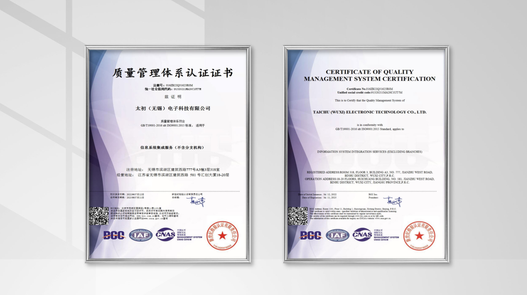太初元碁順利通過ISO9001質(zhì)量管理體系首次認(rèn)證,標(biāo)志著太初元基建立起了一套完善的質(zhì)量管理體系,并逐步步入標(biāo)準(zhǔn)化、規(guī)范化、科學(xué)化的現(xiàn)代企業(yè)管理軌道!