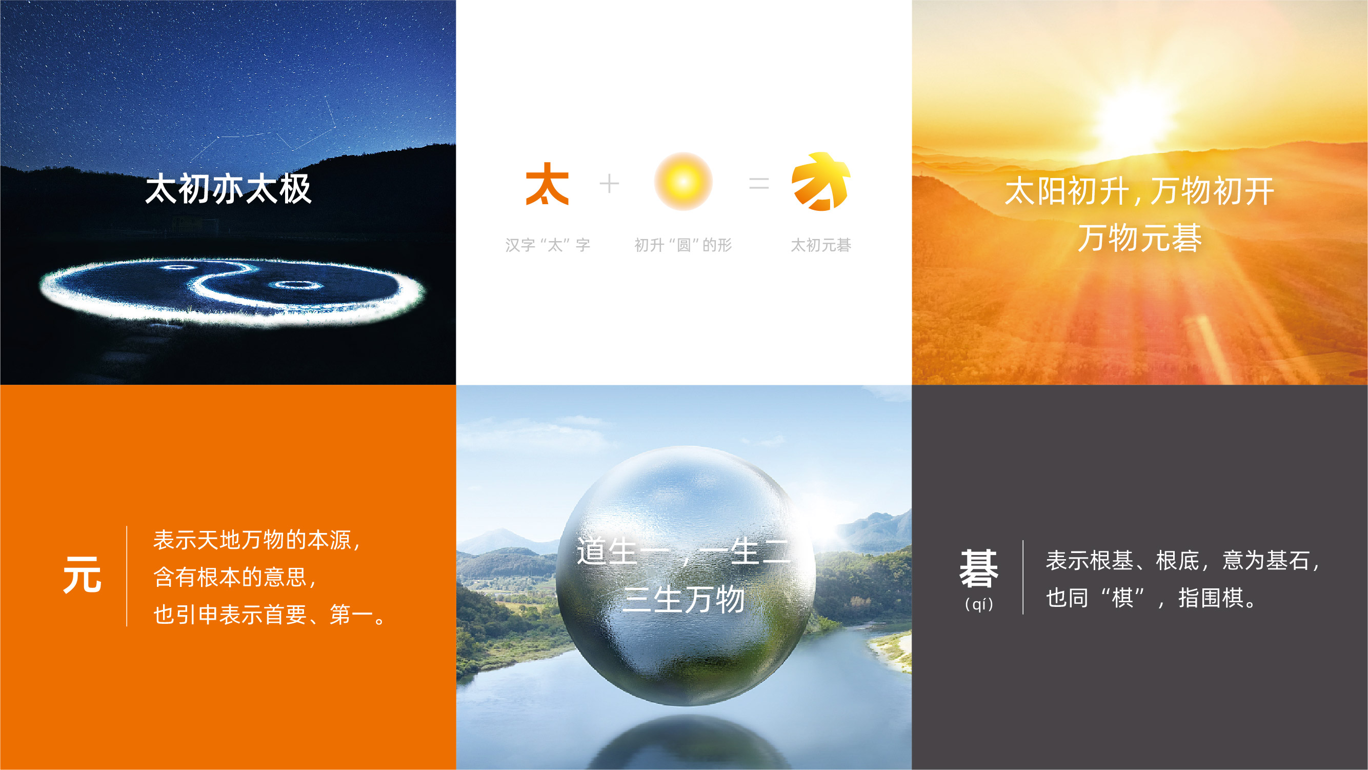 道生一,一生二,三生萬(wàn)物——我們從中提取一個(gè)初始的“圓”形,并結(jié)合漢字“太”字,通過(guò)獨(dú)特的組合方式,創(chuàng)作出了一個(gè)如日初升,朝氣蓬勃的形象。