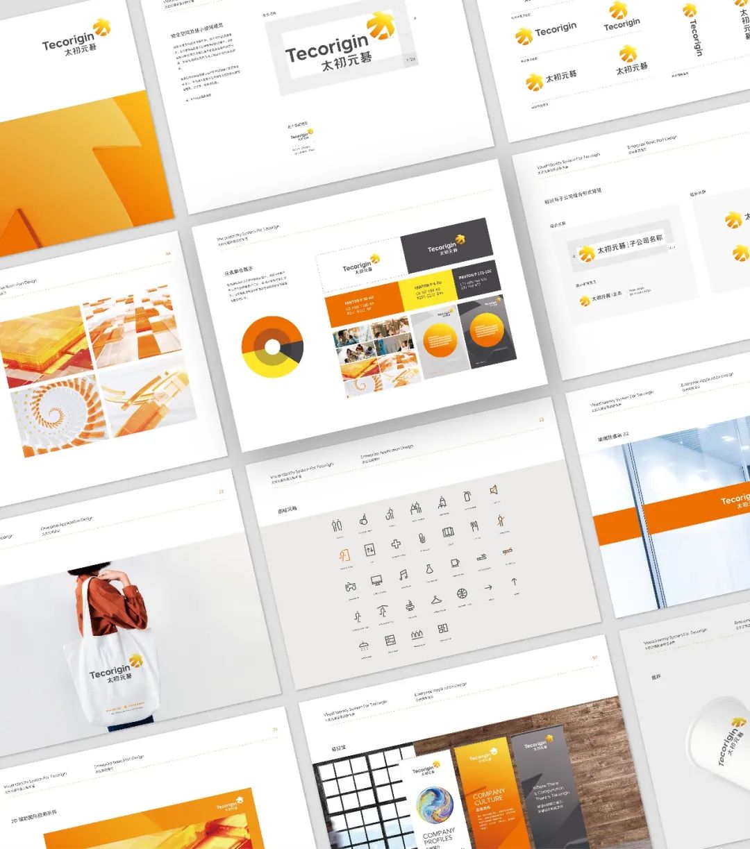 此次VI升級(jí),太初元碁以寓意活力熱情的橙色和象征旭日東升的黃色作為主色調(diào),同時(shí)在不同使用場(chǎng)景中融入黑白灰作為輔助色來(lái)突出品牌色彩。鮮明大方的配色與簡(jiǎn)約又不失個(gè)性化的標(biāo)識(shí)圖案設(shè)計(jì)相輔相成,展現(xiàn)太初元碁作為領(lǐng)先科技企業(yè)的智慧嚴(yán)謹(jǐn)及持續(xù)探索、不斷奮進(jìn)的創(chuàng)新之力。