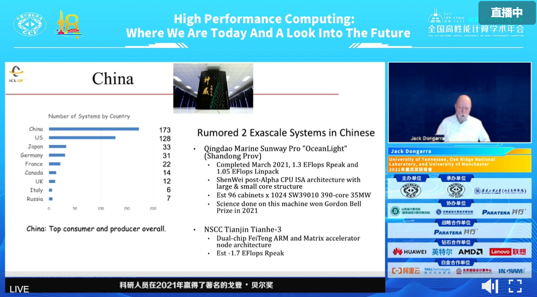 2021圖靈獎獲得者、田納西大學、橡樹嶺國家實驗室和曼徹斯特大學教授Jack J. Dongarra在報告中分享了高性能計算在過去10年里發(fā)生的變化,以及未來的趨勢可能會是什么,其中特別提到由清華大學、無錫超算等團隊所構(gòu)建的“神威·太湖之光”軟件應用生態(tài),已三次獲得世界超算應用最高獎“戈登·貝爾獎”。