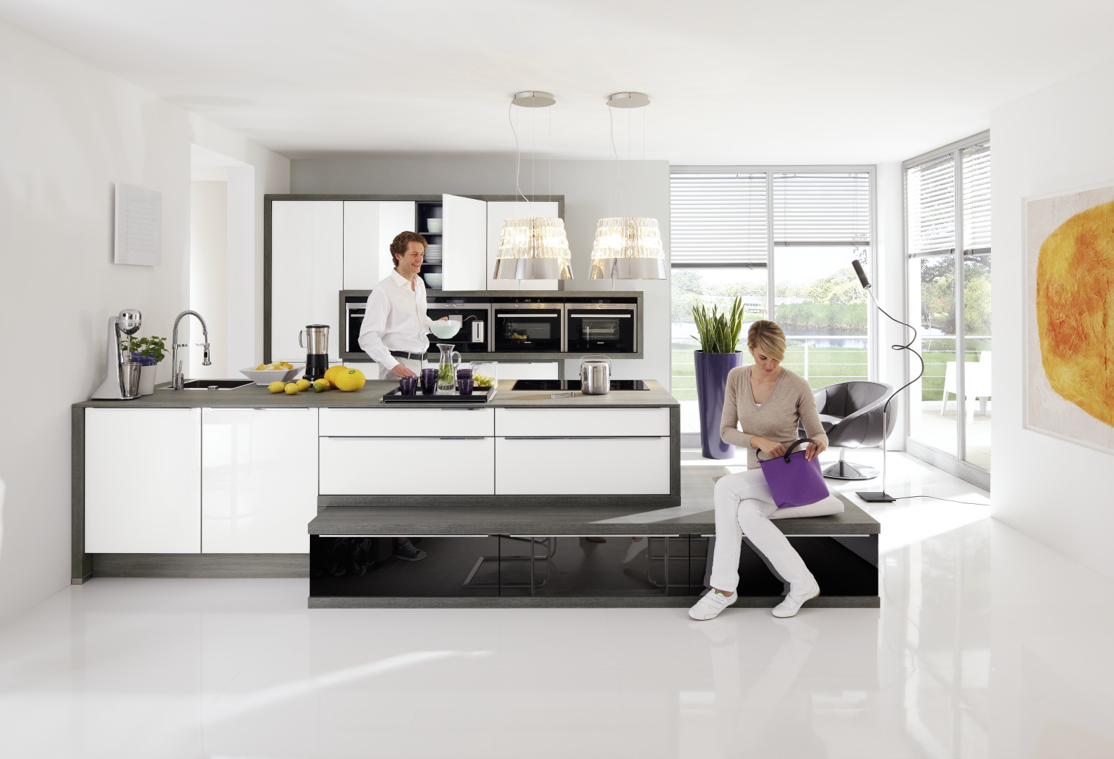 高光玻璃白與高光玻璃黑的組合,黑白顏色對比鮮明。玻璃表面光滑,亮度高,防水性能優(yōu)。一體式把手線條優(yōu)美。與島臺相連的休息區(qū)的設計讓廚房不再是傳統(tǒng)意義上的廚房,更像是一個交流、休憩的場所,使烹飪者不再孤獨,可減輕勞作的枯燥感。