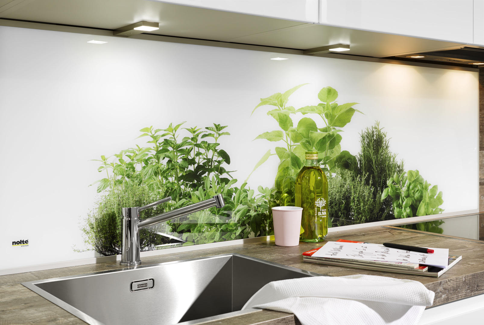 綠色植物做背板的圖案,廚房更加清新、有生氣。